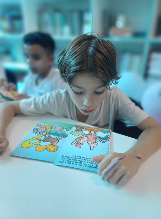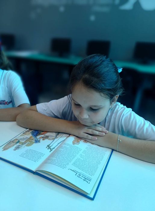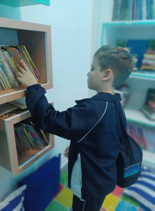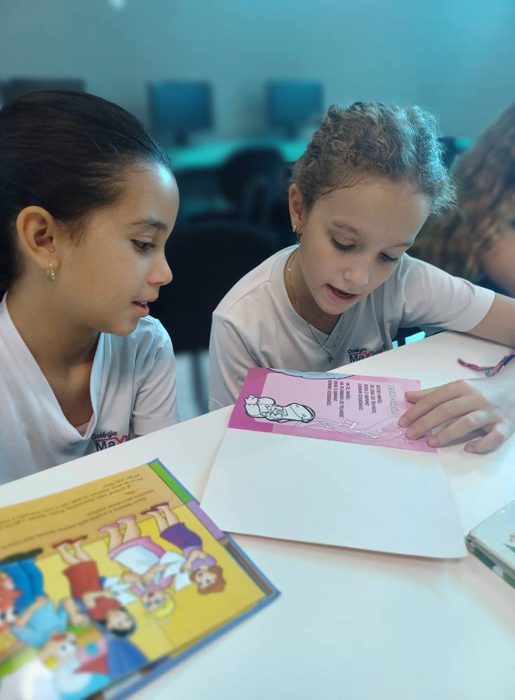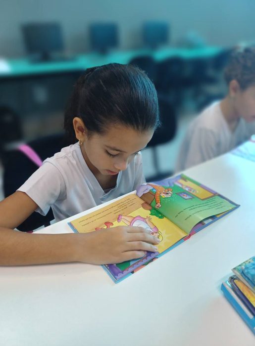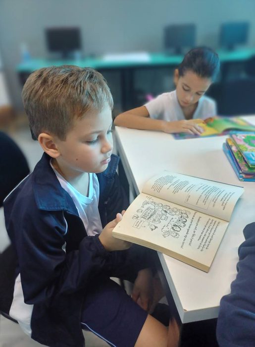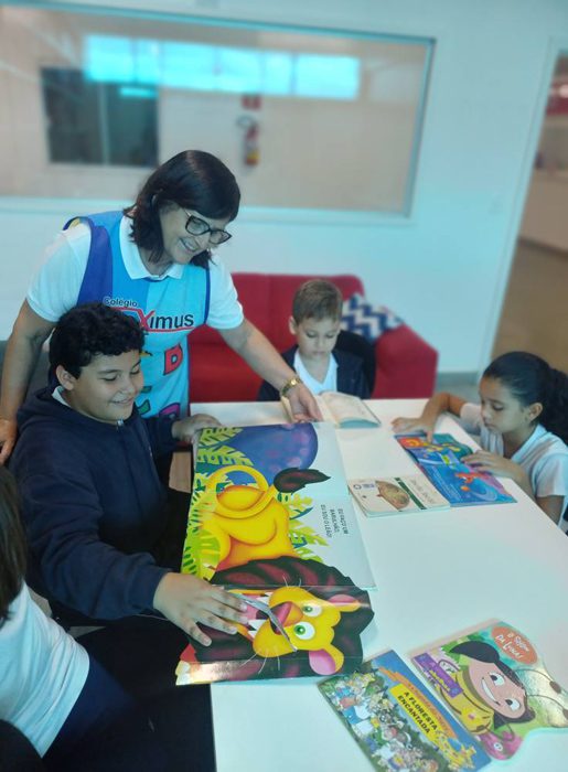 Os alunos do 4º ano tiveram uma aula especial com a professora Eliana. A turma foi até a biblioteca do colégio, onde cada aluno pôde escolher um livro e realizar a leitura em um ambiente tão acolhedor e inspirador.