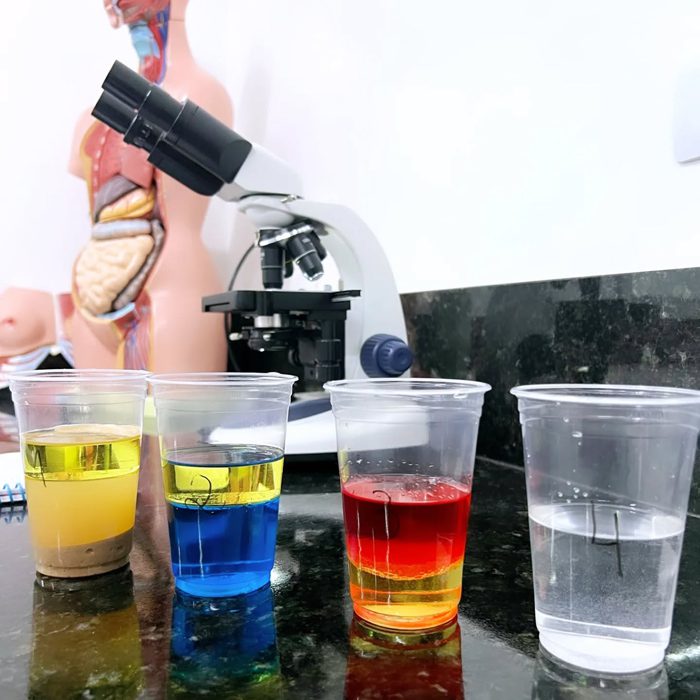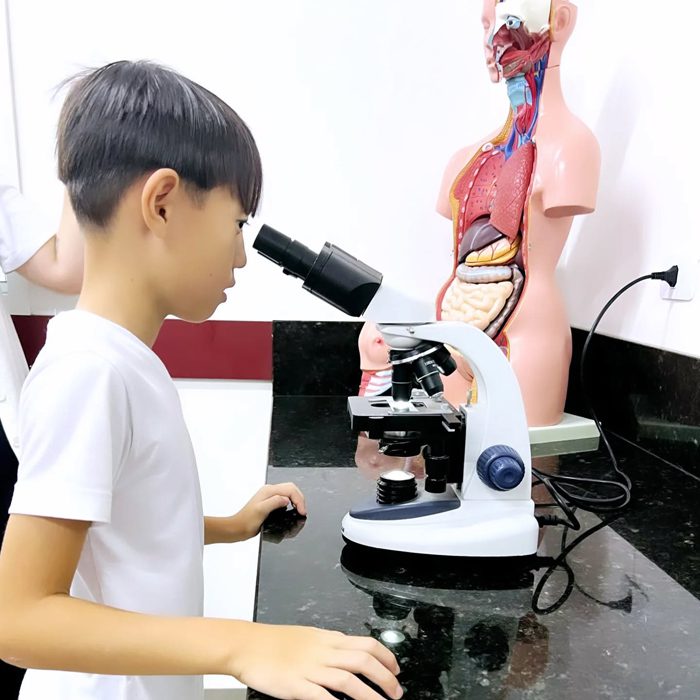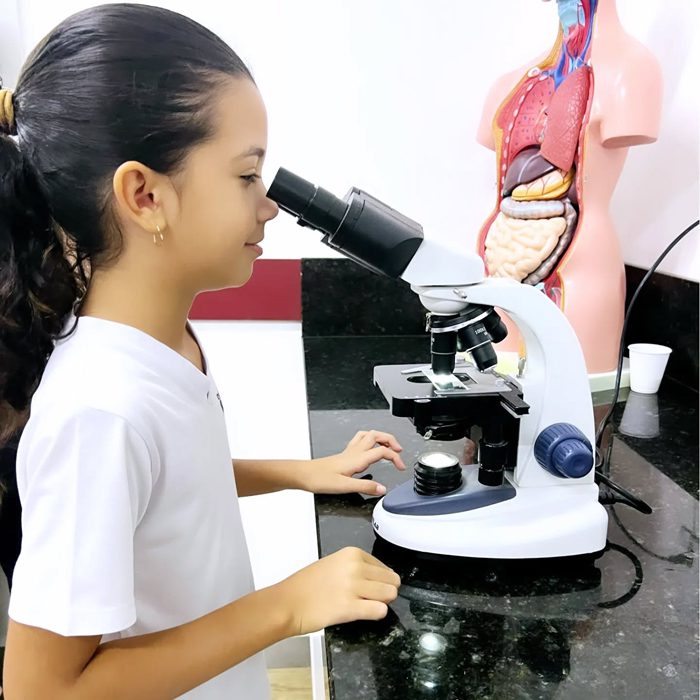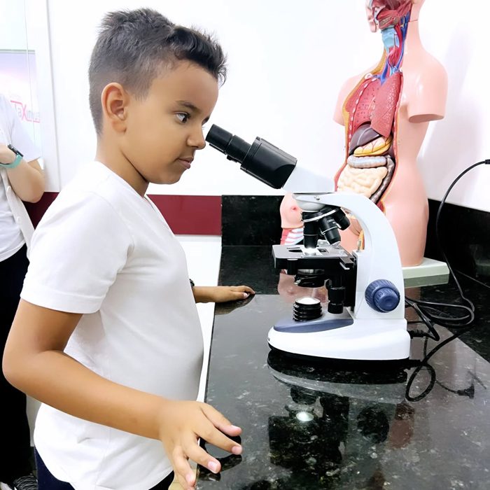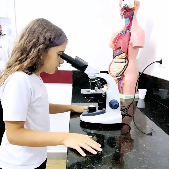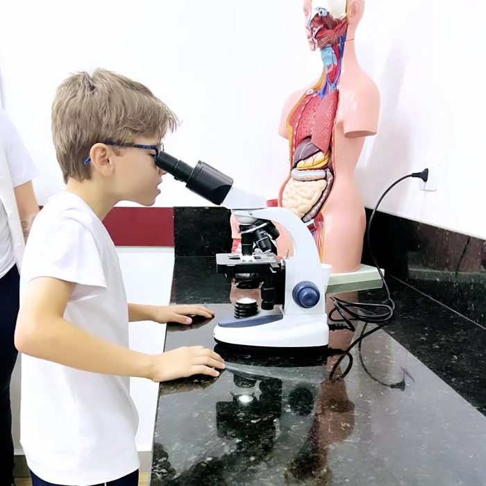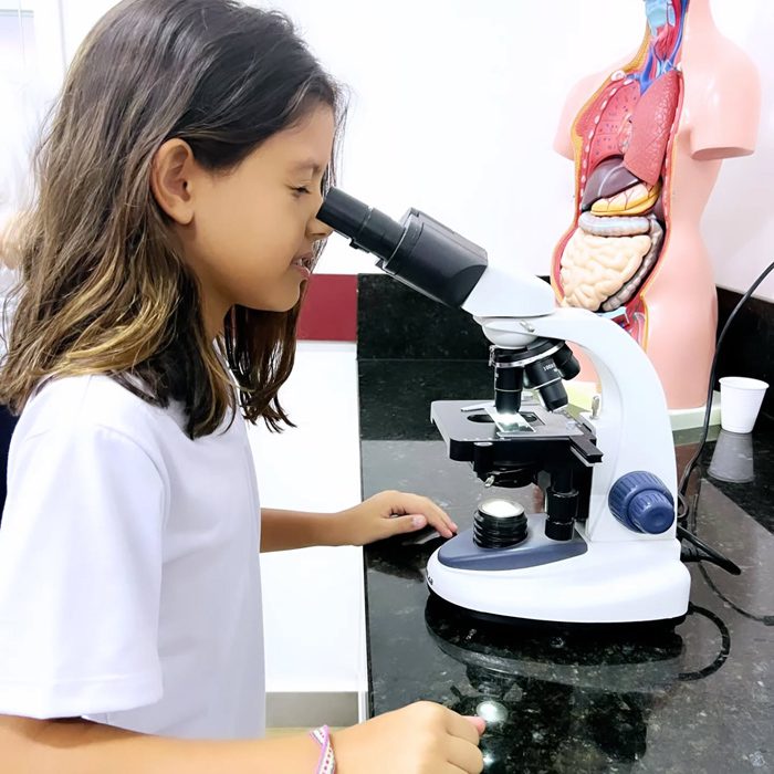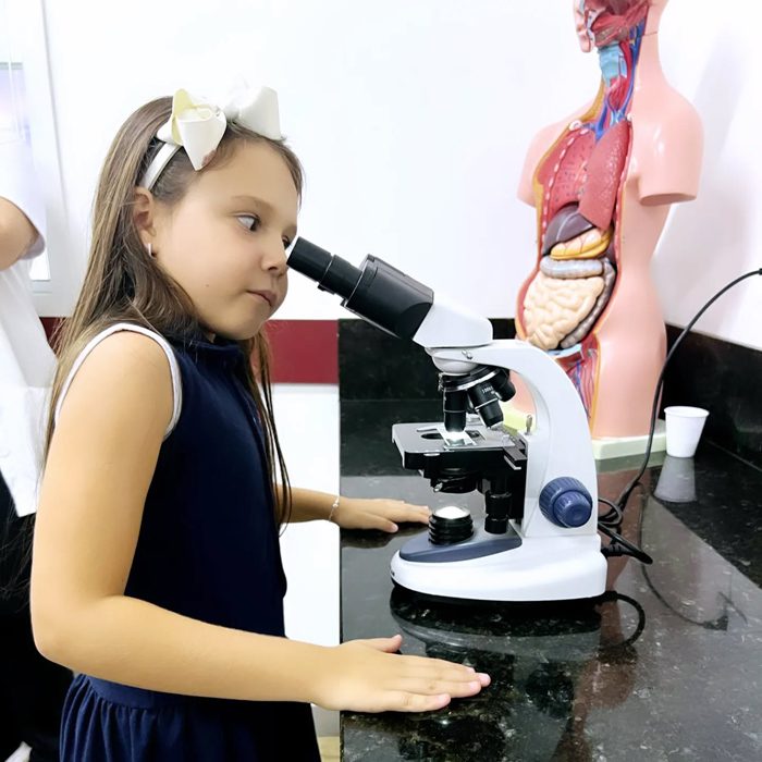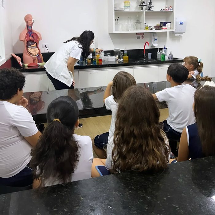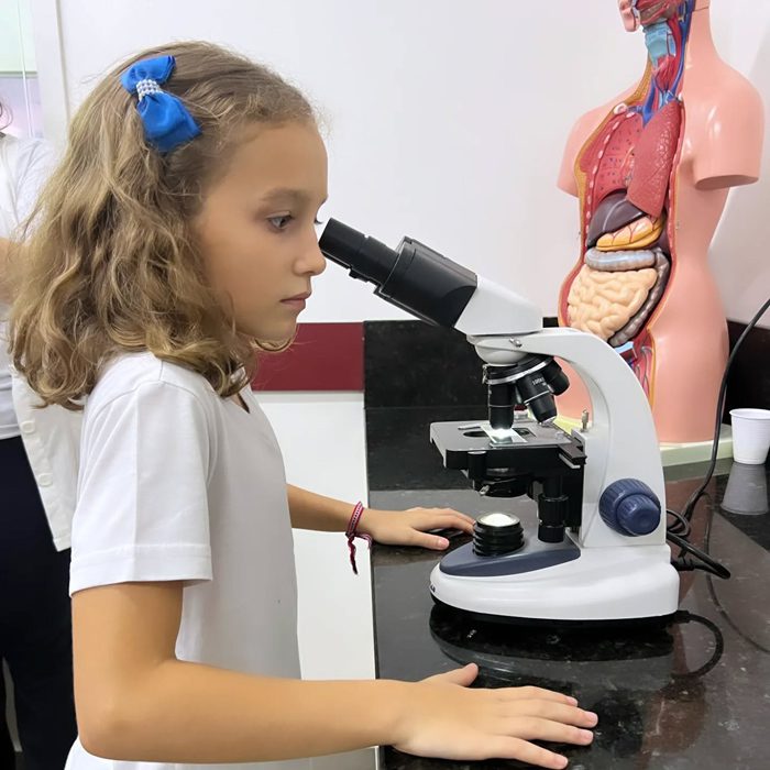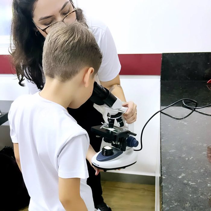 Os alunos do 4º ano realizaram, junto com a professora Lorena de ciências do fundamental II, uma aula prática sobre misturas homogêneas e heterogêneas. Nesta aula foi possível observar diversos materiais macroscópicos que não se misturam e outros microscópicos, como os lactobacilos e as células sanguinárias, ampliando o conhecimento do mundo científico e despertando a curiosidade sobre a vida.
